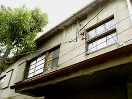 これまた学校の近くの、平屋の長屋が並んだ路地。